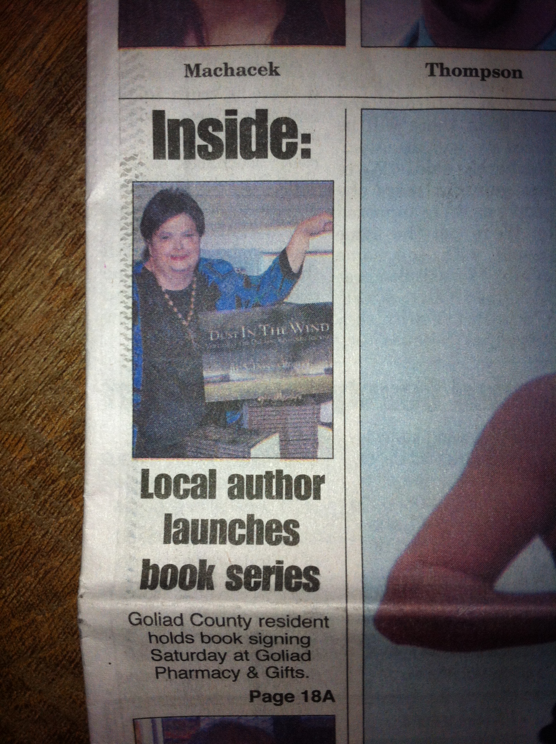 Slow times in Goliad, TX! Made the front page for my first book launch!